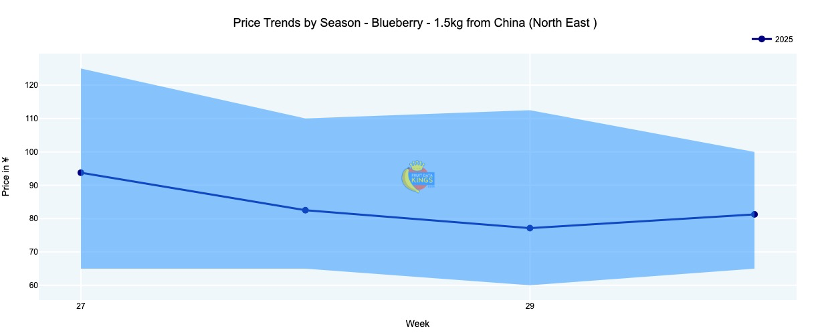 Peruvian blueberry prices in China have been swinging dramatically this season. Shipments entered the market in early July while domestic Chinese blueberries were still plentiful, creating intense price competition, despite industry insiders confirming that Peruvian exporters typically adjust their shipments based on the availability of Chinese blueberries.