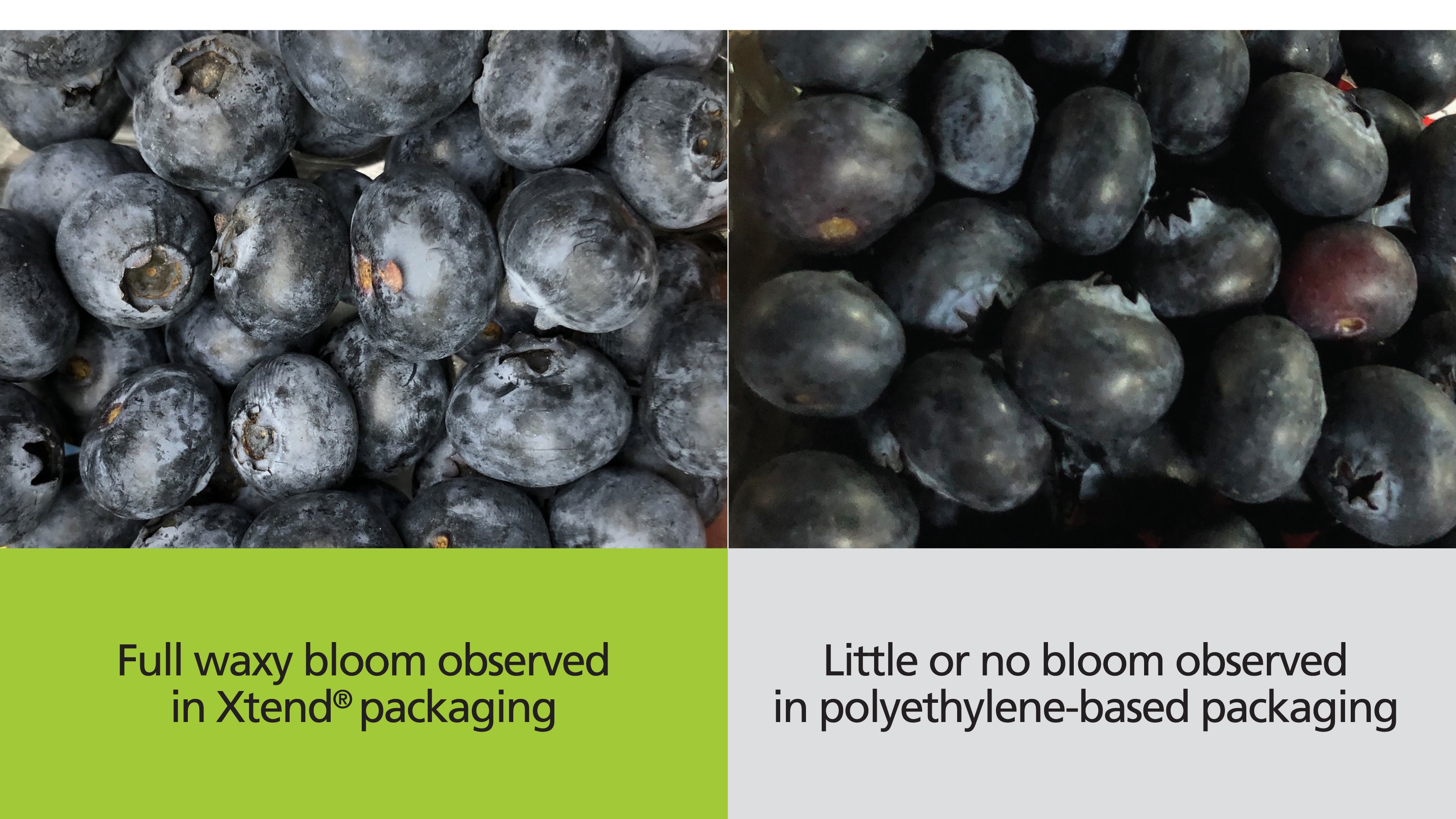 Ward highlighted three major challenges in blueberry storage and transportation: the berries are highly susceptible to weight loss from moisture evaporation, they are prone to microbial decay when exposed to free moisture, and they are likely to lose their fragile natural “bloom” — the powdery white coating that protects the fruit — during packing and shipping.